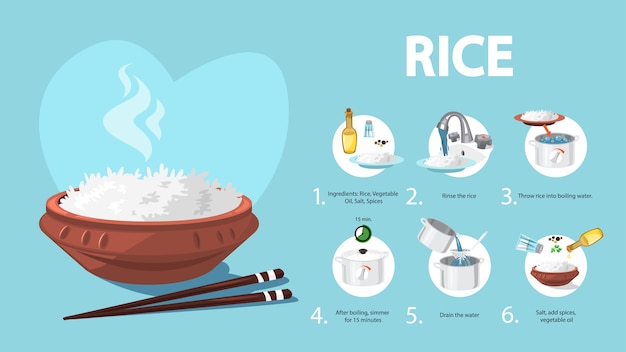 A: Dokładnie spłucz ryż, aż woda będzie przezroczysta, dodaj olej i sól do gotującej się wody, a po ugotowaniu odczekaj 5 minut przed podaniem.